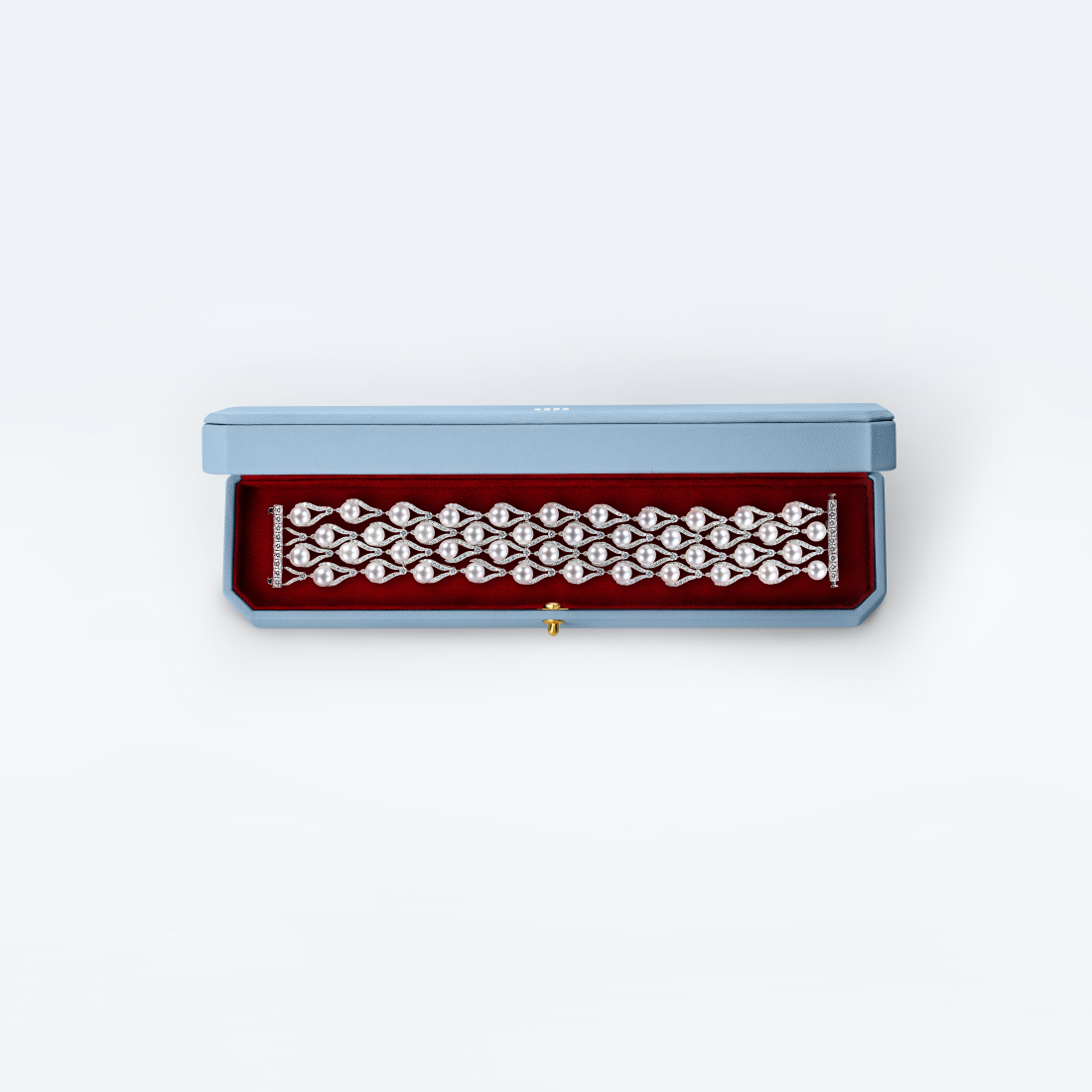 Парадный браслет «Коронация» особым образом интерпретирует классическую «триумфальную» композицию, которая определила облик Большой императорской короны и стала источником вдохновения для всей коллекции. Однако мотив лавровых ветвей в этом украшении выступает лишь акцентным обрамлением. Главный же герой — безупречный жемчуг, из которого складывается ритмичный узор, похожий на роскошную тесьму.