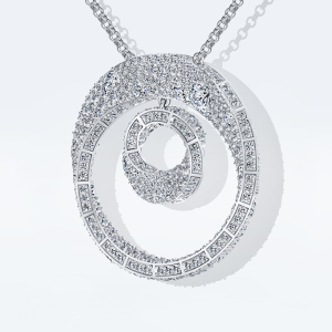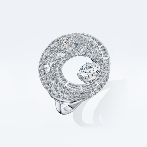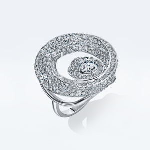 Основной мотив коллекции — перекрученные бриллиантовые ленты из белого золота, украшенные мозаичным паве из бриллиантов разных огранок. Спирали и фестоны, в которые сворачиваются эти ленты, напоминают размеренные движения пар, закружившихся в танцевальном порыве.